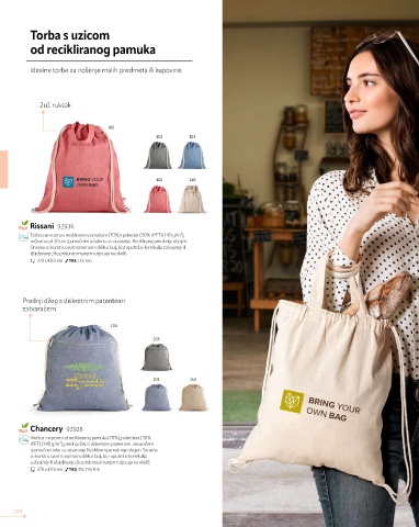 ručkama od 30 cm i pamučnim užadima za zatvaranje. Reciklirani pamuk nije obojen.