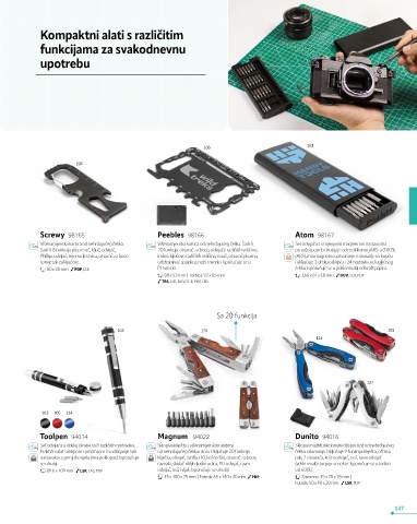 Phillips odvijač, mjerna ljestvica, otvarač za boce imbus ključeve različitih veličina, rezač, otvarač pisama, rABS), ima magnetno zatvaranje i otvaranje na kopču