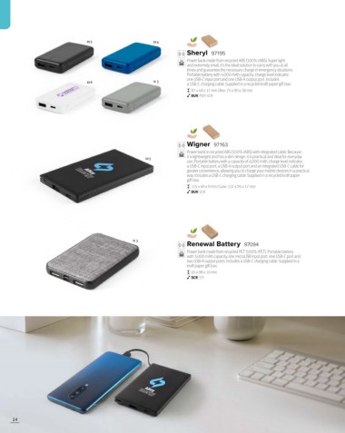 Power bank in recycled ABS (100% rABS) with integrated cable. Because