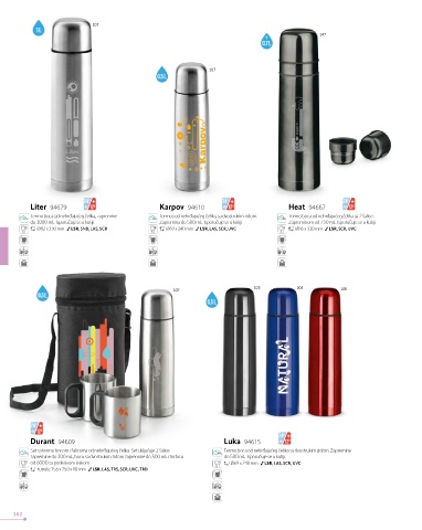 zapremine do 200 mL, bocu sa dvostrukim zidom zapremine do 500 mL i torbicu do 500 mL. Isporučuje se u kutiji.