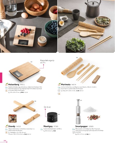Sklopivi stalak za lonce od bambusa. Isporučuje se u Gumirani kuhinjski tajmer od ABS-a. Mlin za začine od nehrđajućeg čelika. PS posuda