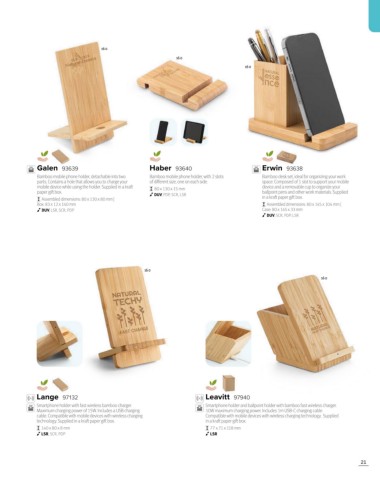 Smartphone holder with fast wireless bamboo charger. Smartphone holder and ballpoint holder with bamboo fast wireless charger.