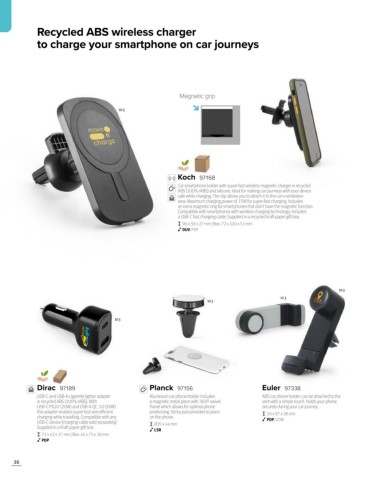 in recycled ABS (100% rABS). With a magnetic metal piece with 360º swivel vent with a simple touch. Holds your phone
