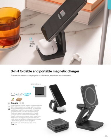 Super-fast foldable magnetic wireless charger in recycled ABS