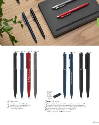 s inovativnim oblikom kopče koja se ističe svojom recikliranim). Kemijska olovka ima plavu tintu, a olovka bez tinte omogućuje dugotrajnu