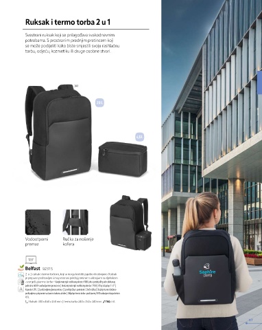 2-u-1 ruksak s termo torbom, koji se mogu koristiti zajedno ili odvojeno. Ruksak