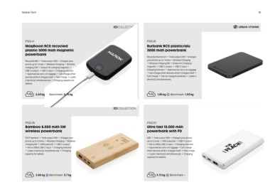 Recycled ABS • Total output 23W • Charges your your phone up to 1 times • Wireless Charging