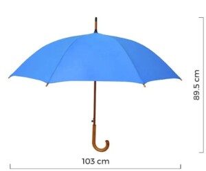 Opis: Kišobran sa 8 panela, povijena drvena drška, drveni vrh, krajevi i stub (Ø 14 mm)
