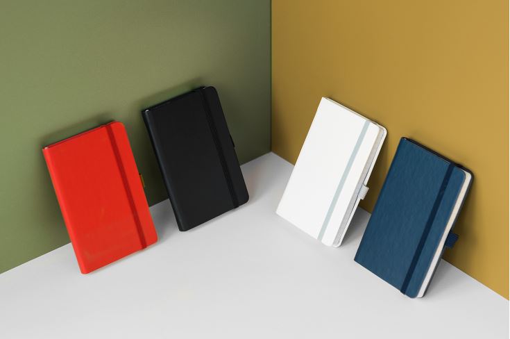 Opis: Notes sa zaobljenim ivicama, elastičnom trakom i držačem za olovku