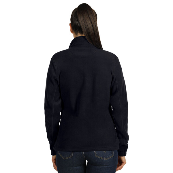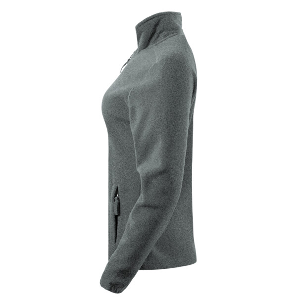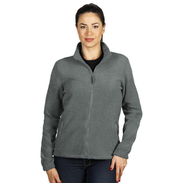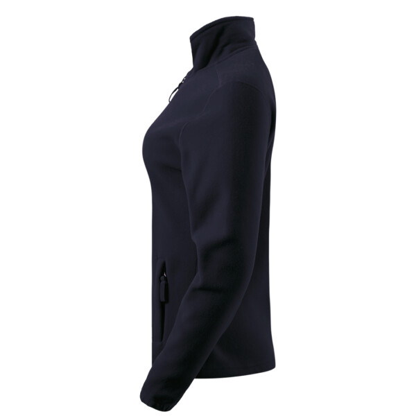 Opis: Ženska dukserica, 280 g/m2, blago strukirana, visoka kragna, dva prednja džepa sa rajsferšlusom, elastične ranfle na rukavima, elastični učkuri sa steznim regulatorima u dnu, okovratnik ojačan trakom