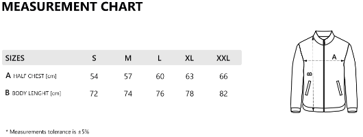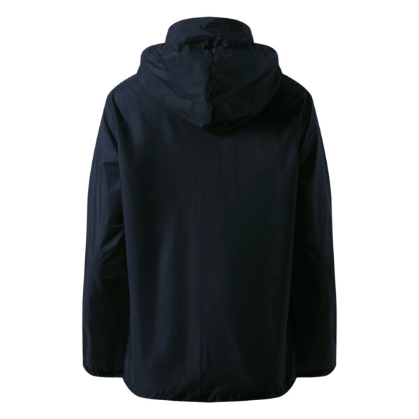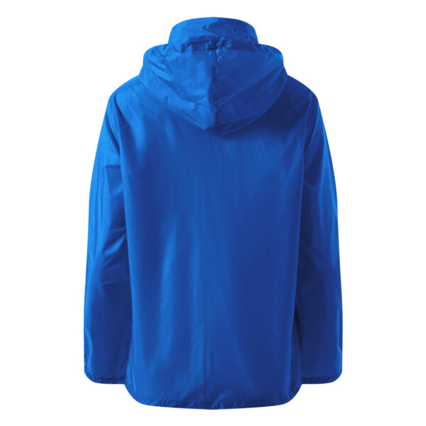 Opis: Vjetrovka, visoka kragna, kapuljača sa elastičnim učkurom i steznim regulatorima savijena u kragni, koja je zatvorena čičak trakom, elastične ranfle na rukavima, dva prednja džepa sa rajsferšlusom, učkuri sa steznim regulatorima u dnu, integrisana džep torbica smeštena u desnom džepu